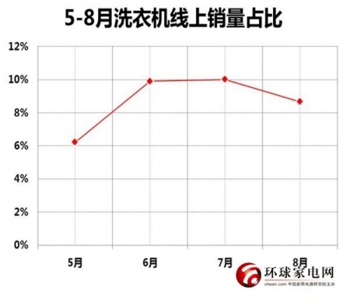 图为5-8月洗衣机线上销量占比